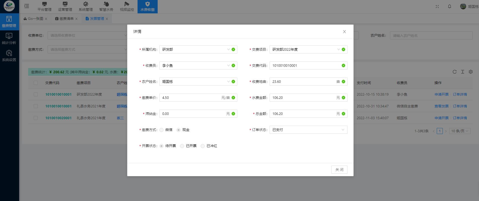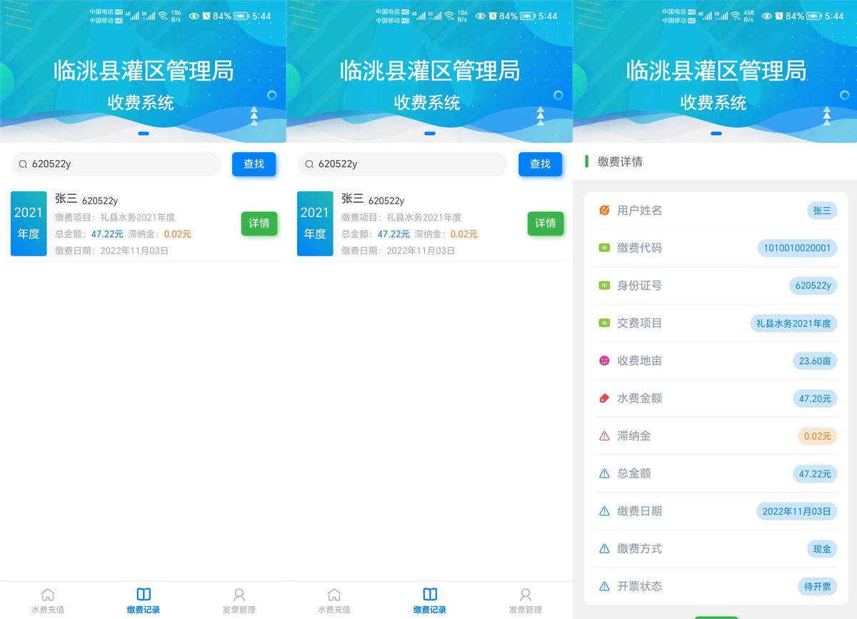灌區(qū)收費(fèi)系統(tǒng)運(yùn)用計(jì)算機(jī)應(yīng)用技術(shù)以及相關(guān)的專用分析軟件和通訊網(wǎng)絡(luò)所組成的一個(gè)綜合性的收費(fèi)系統(tǒng)。通過對(duì)流經(jīng)用水戶的灌溉 時(shí)間以及流量的輸入,計(jì)算出該用水戶的水費(fèi),生成收費(fèi)賬單提交至上級(jí)審核 ,審核通過即可在線繳費(fèi)以及他人代繳功能。管理單位可以在手機(jī)和電腦網(wǎng)頁(yè)上同步查詢相應(yīng)的用水量以及繳費(fèi)情況。